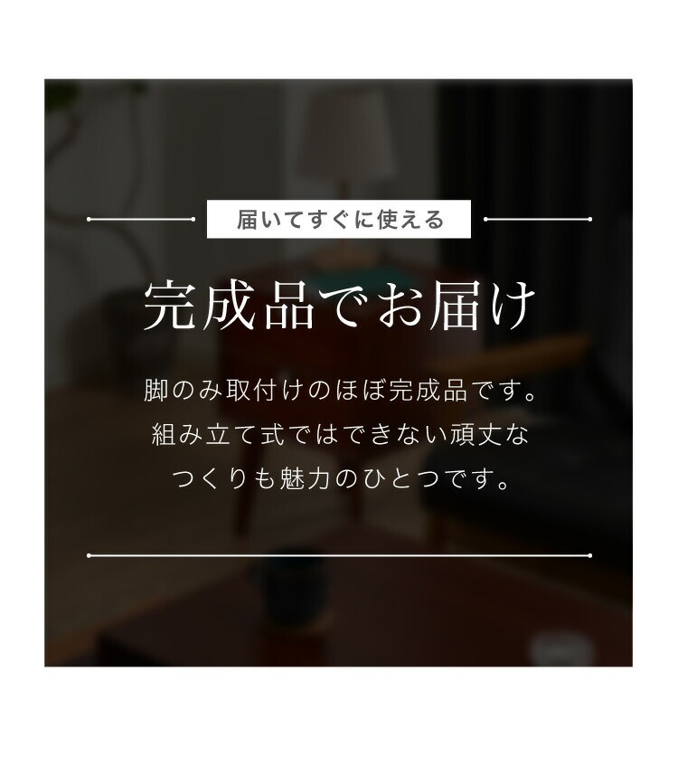 脚部を取り付けるだけの完成品で、細身の脚部はマホガニーの重厚感とクラシックな印象を程良く和らげ、家具にモダンな印象を与えています。