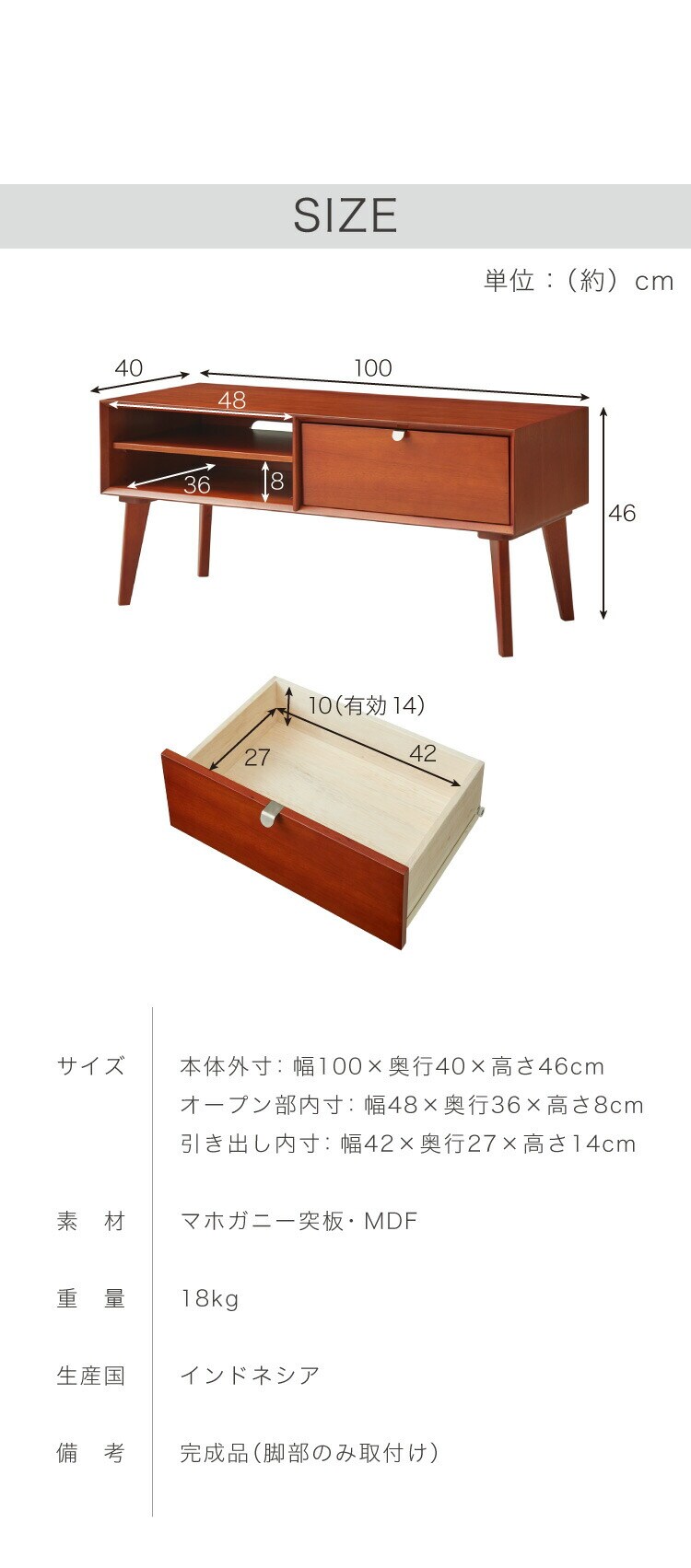 本体外寸:幅100×奥行40×高さ46cm