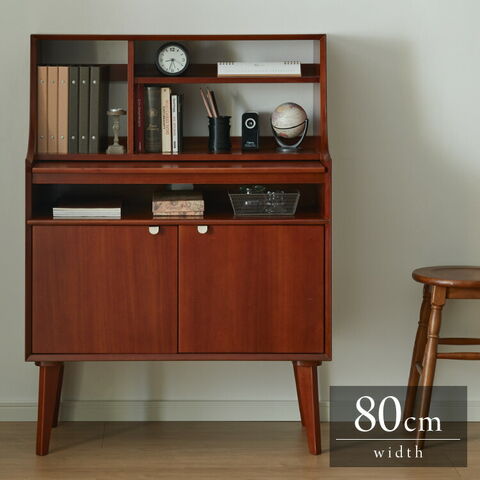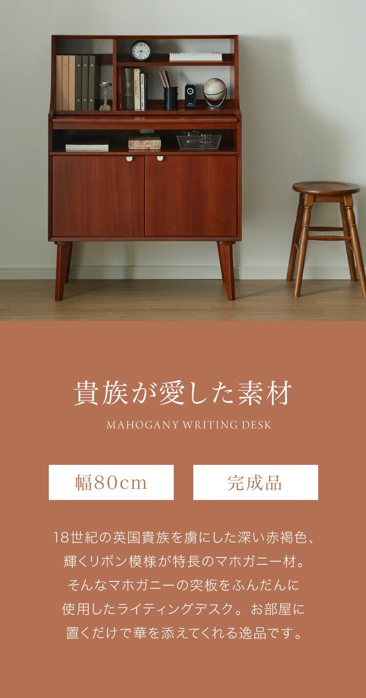 ライティングデスク 幅80cm 北欧 ヴィンテージ 天然木 マホガニー 完成品 勉強机 学習机 書斎 デスク 収納家具 おしゃれ モダン ブラウン 木製 スライド天板 高級感 リモートワーク 在宅 AVA アヴァ【送料無料】