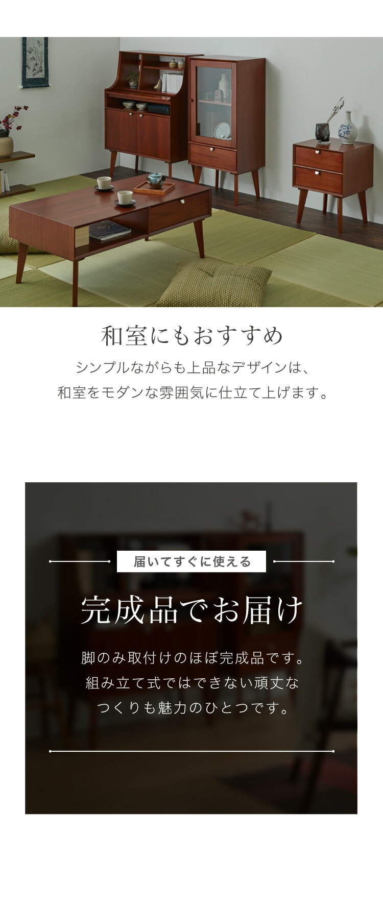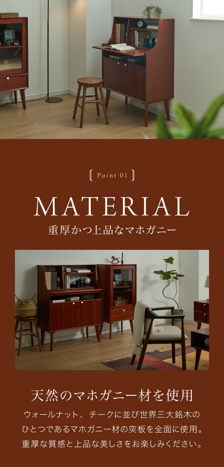 天然木マホガニー材を使用した北欧ヴィンテージ調インテリアシリーズ