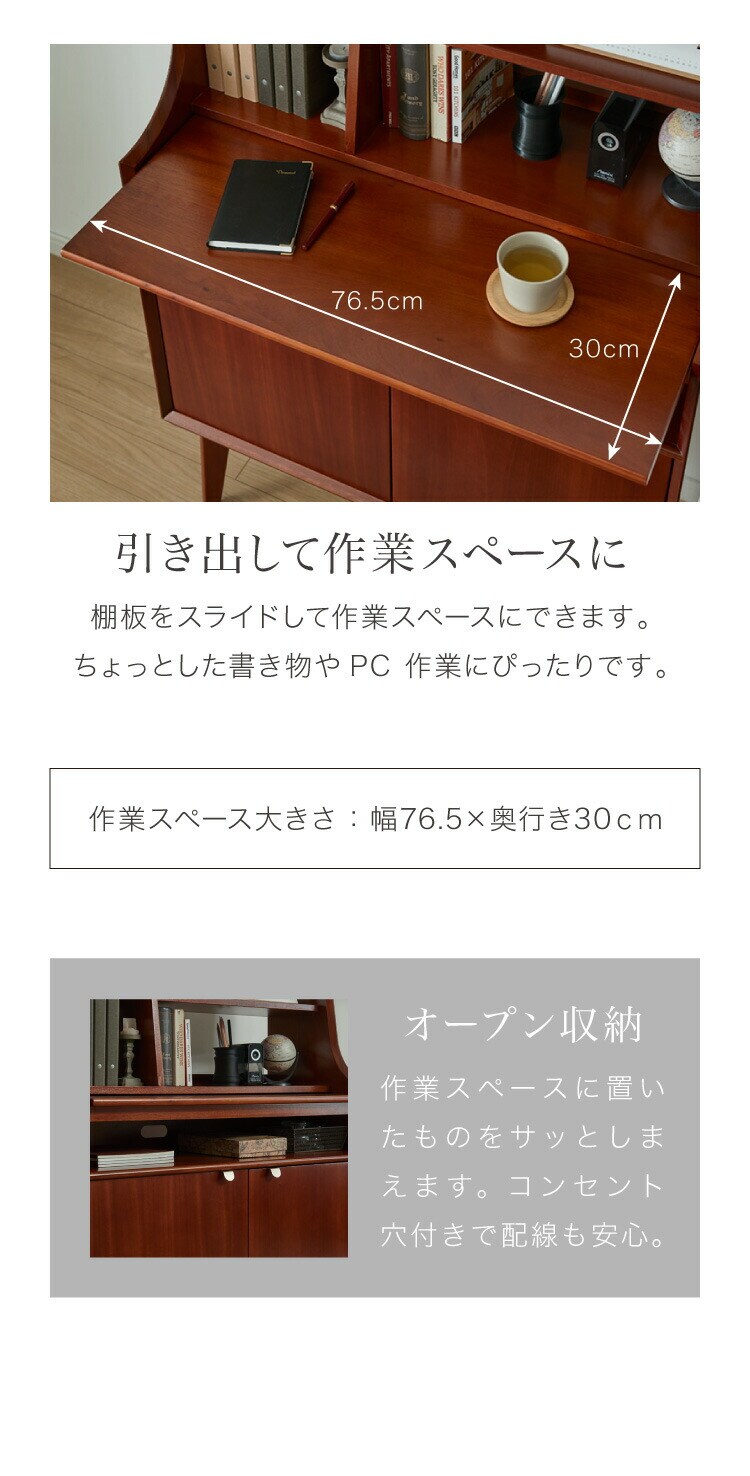 ・スライド可能な天板でデスクワークにもキャビネットにも2WAY感覚でご利用いただけます。