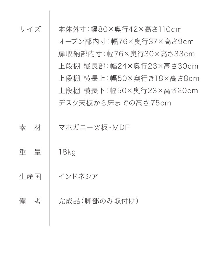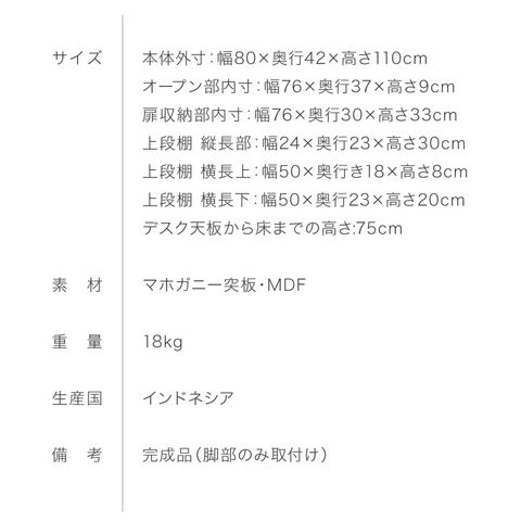 本体外寸:幅80×奥行42×高さ110cm