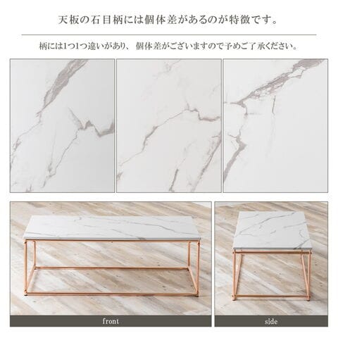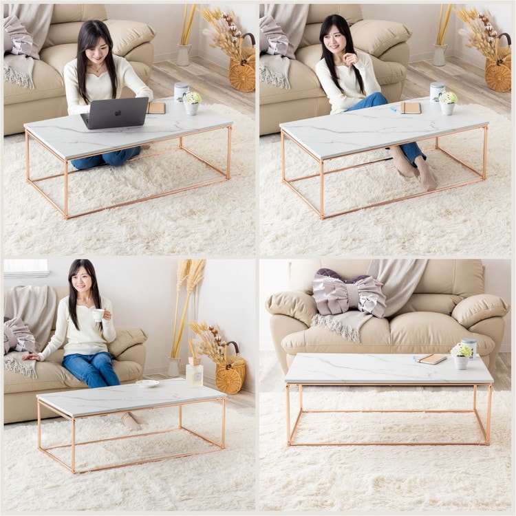 ・石目調の天板にピンクゴールドメッキのフレームを組み合わせた可愛らしいリビング家具