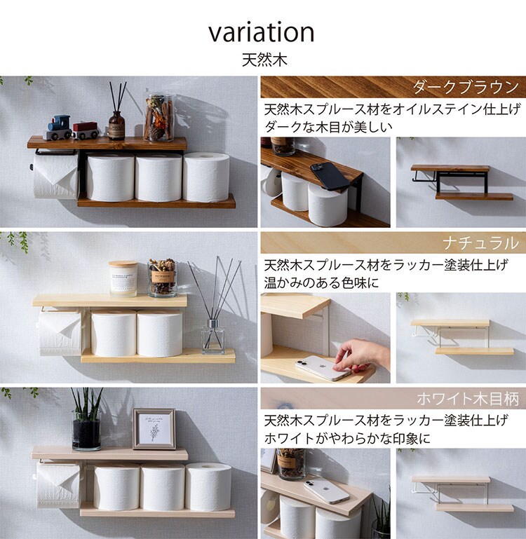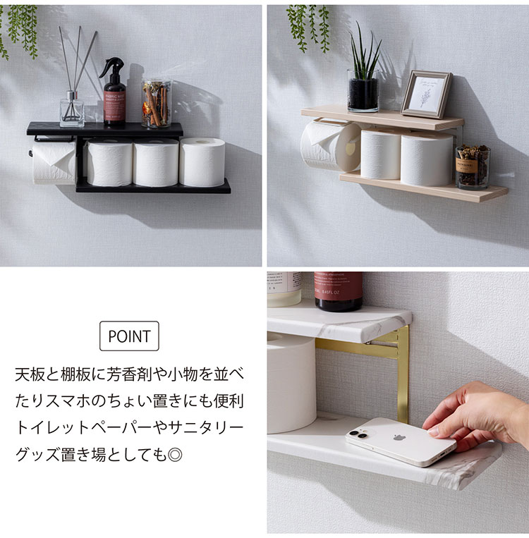 トイレットペーパーホルダー おしゃれ スタイリッシュ 落下防止 トイレットペーパー置き 壁掛け ヴィンテージ 収納付き 棚付き 天然木 アイアン【送料無料】