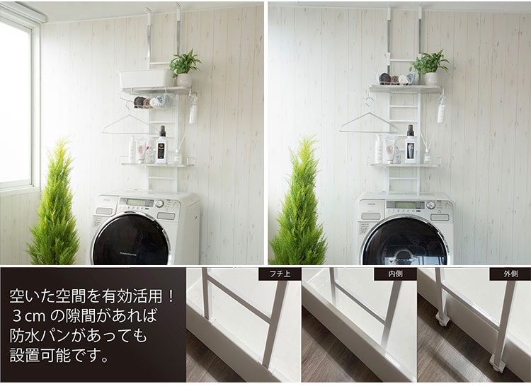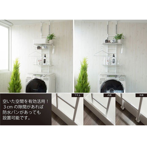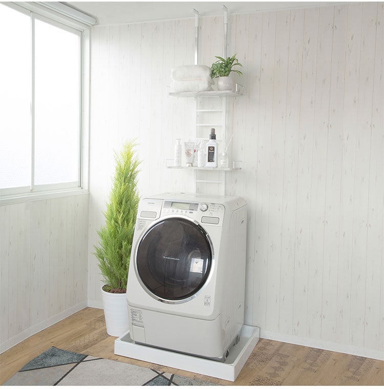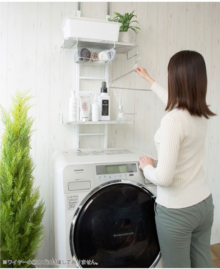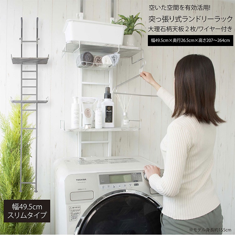 伸縮 突っ張りランドリーラック 大理石柄 2枚 ワイヤー付き バスケット 防水パン対応 突っ張り 突っ張り式ランドリーラック バスケット カゴ 洗濯 洗濯機 ラック ランドリー収納 洗面所 フラット棚【送料無料】