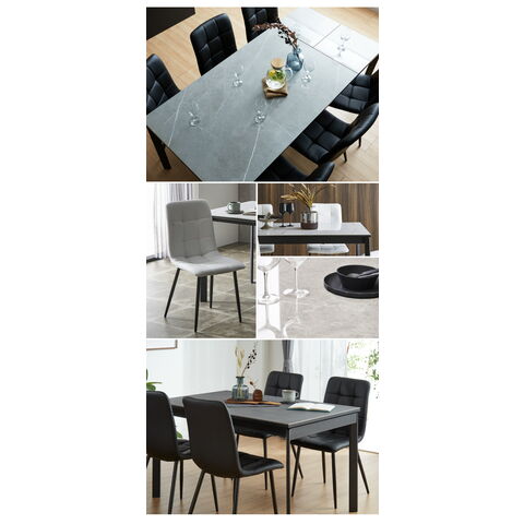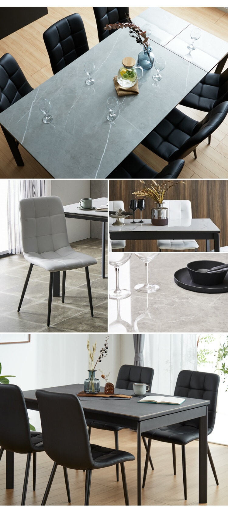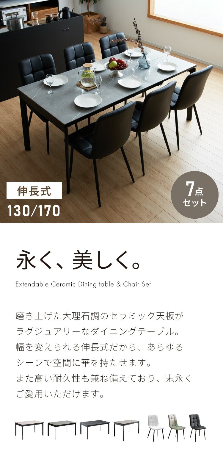 セラミック 伸縮 ダイニングセット 6人掛け 7点セット ダイニングテーブルセット 伸長式 幅130~幅170 合皮 アイアン 鏡面 ダイニングチェア 耐水 耐熱 大理石調【送料無料】