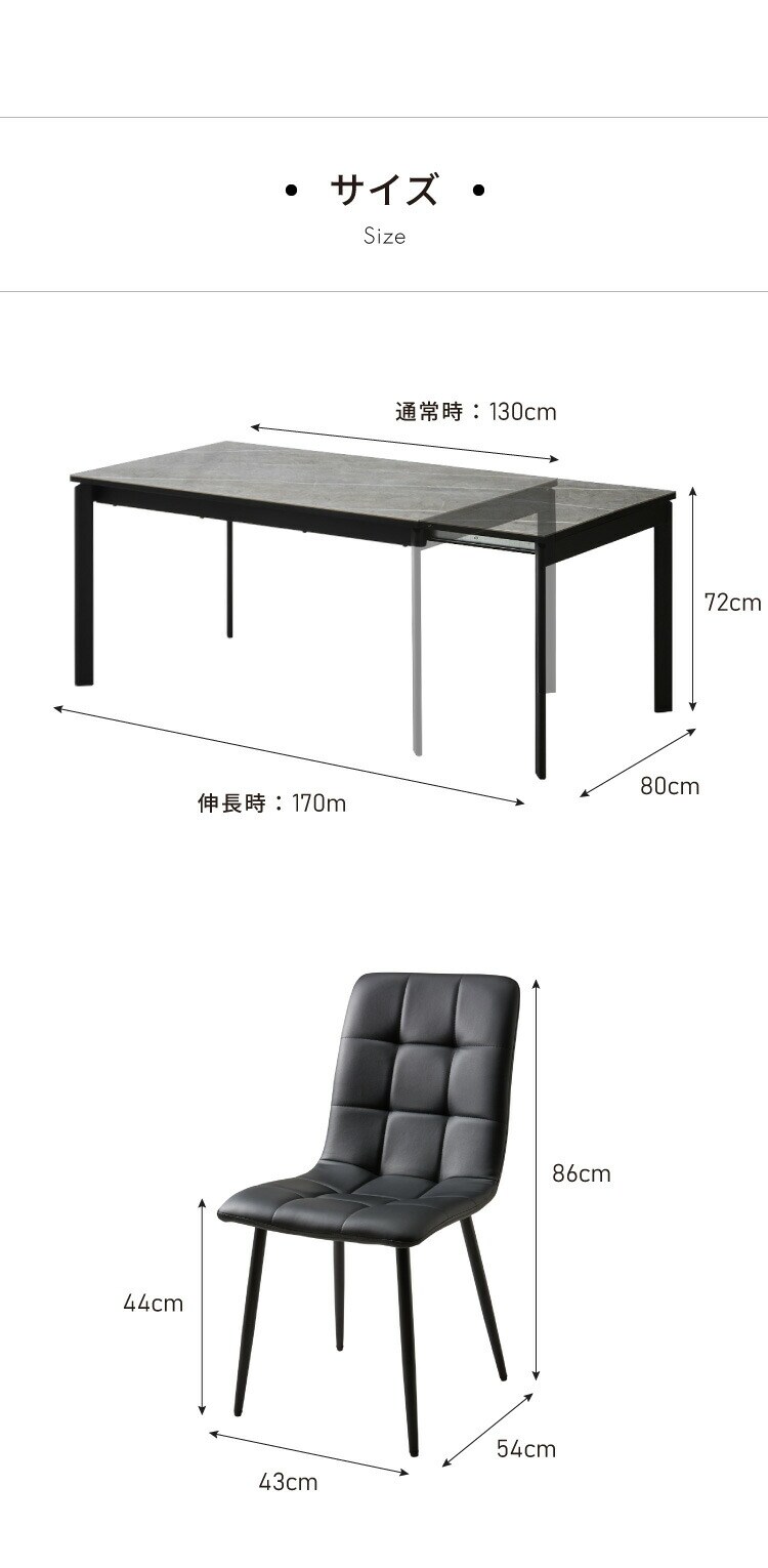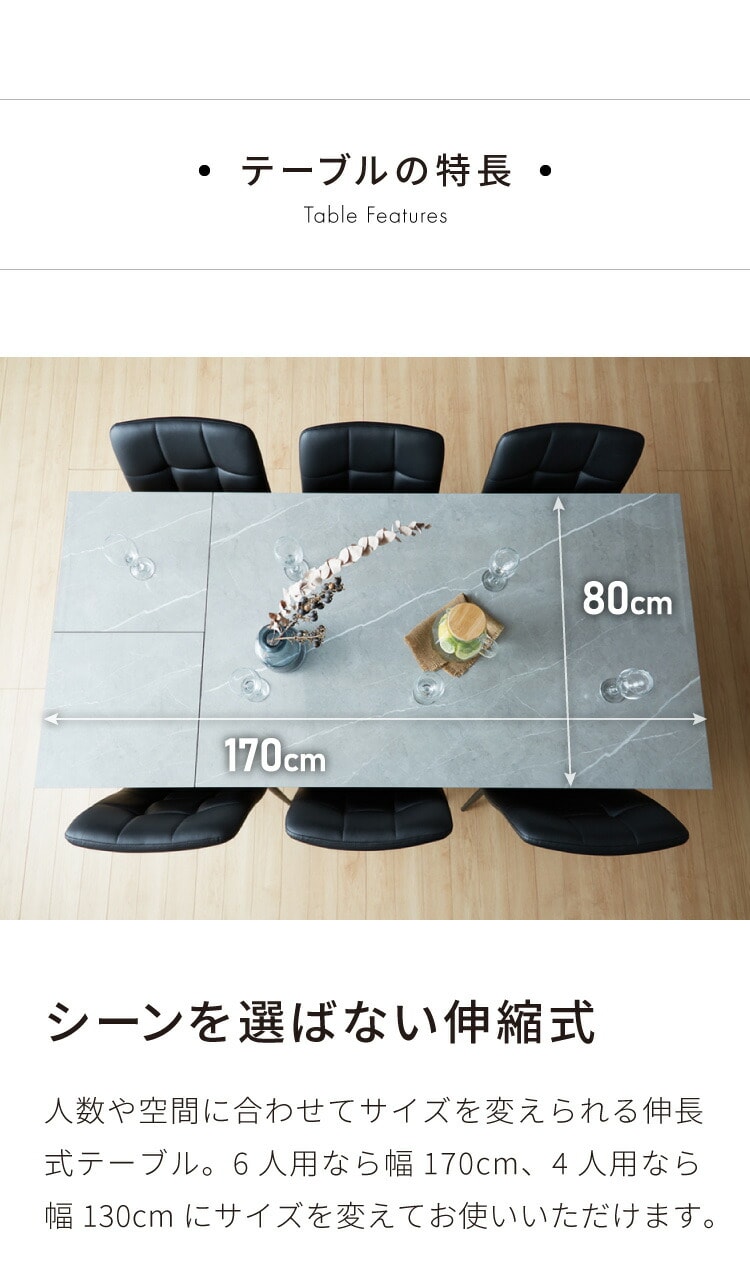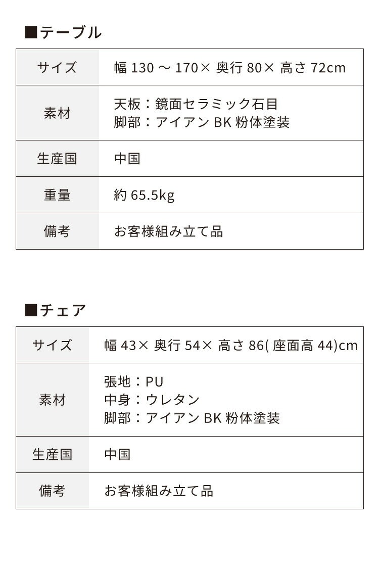 テーブル:幅130~170cm×奥行80cm×高さ72cm