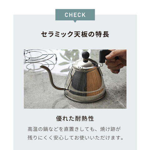 デザイン性・機能性に優れた石目のセラミック天板採用。