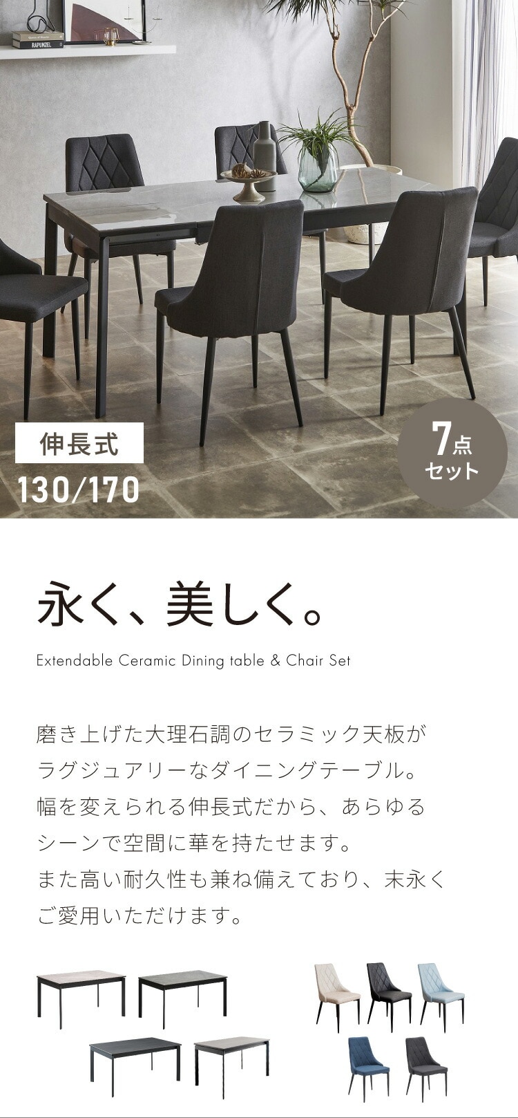 セラミック 伸縮 ダイニングセット 6人掛け 7点セット ダイニングテーブルセット 伸長式 幅130~幅170 ファブリック 鏡面 ダイニングチェア 耐水 耐熱 大理石調【送料無料】のレビュー