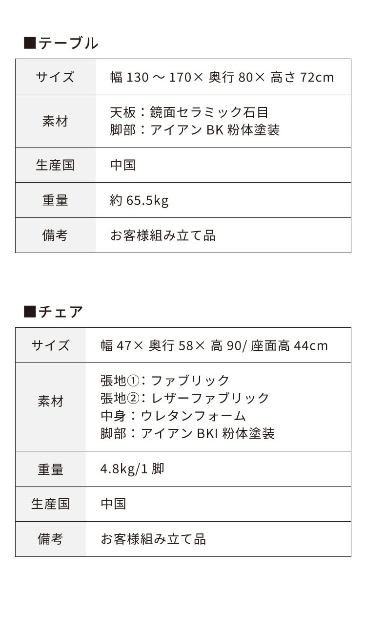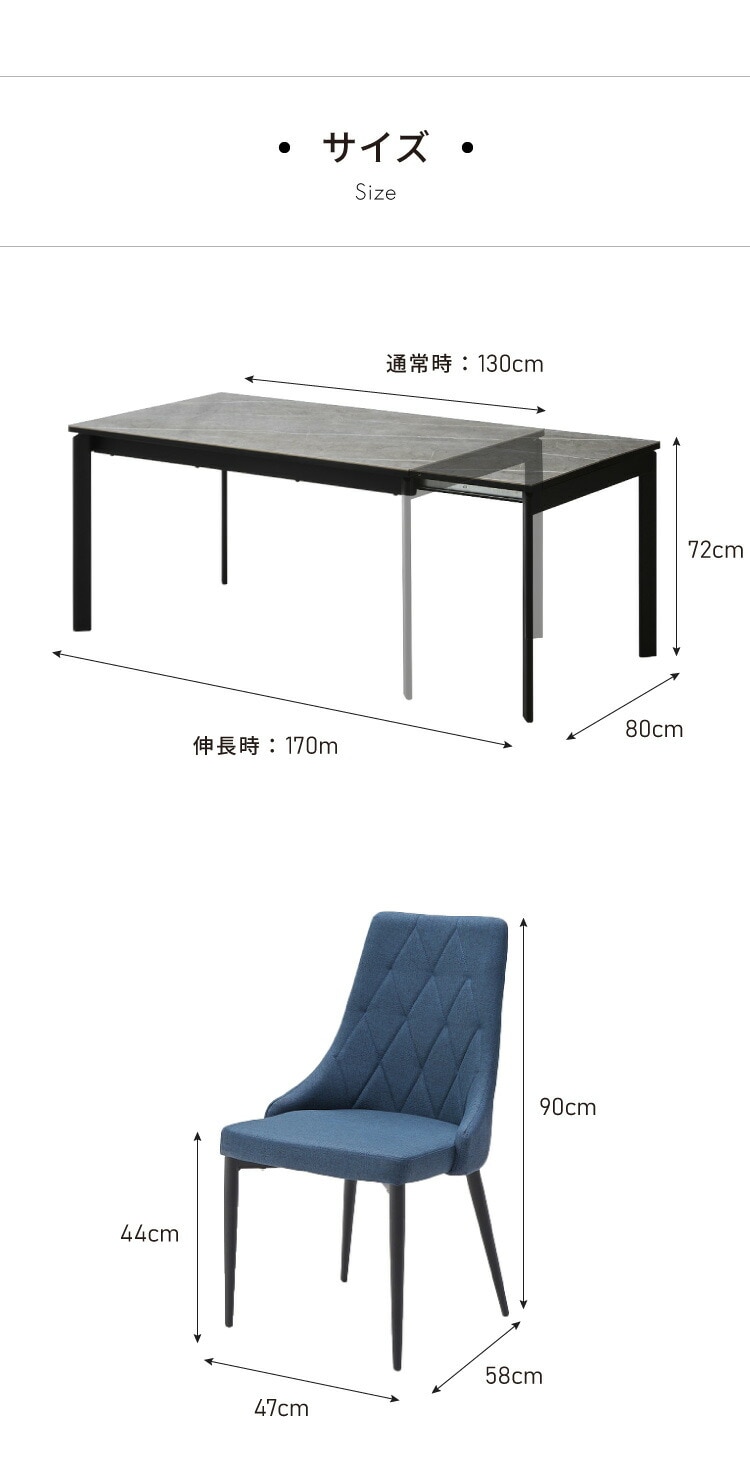 テーブル:幅130~170cm×奥行80cm×高さ72cm