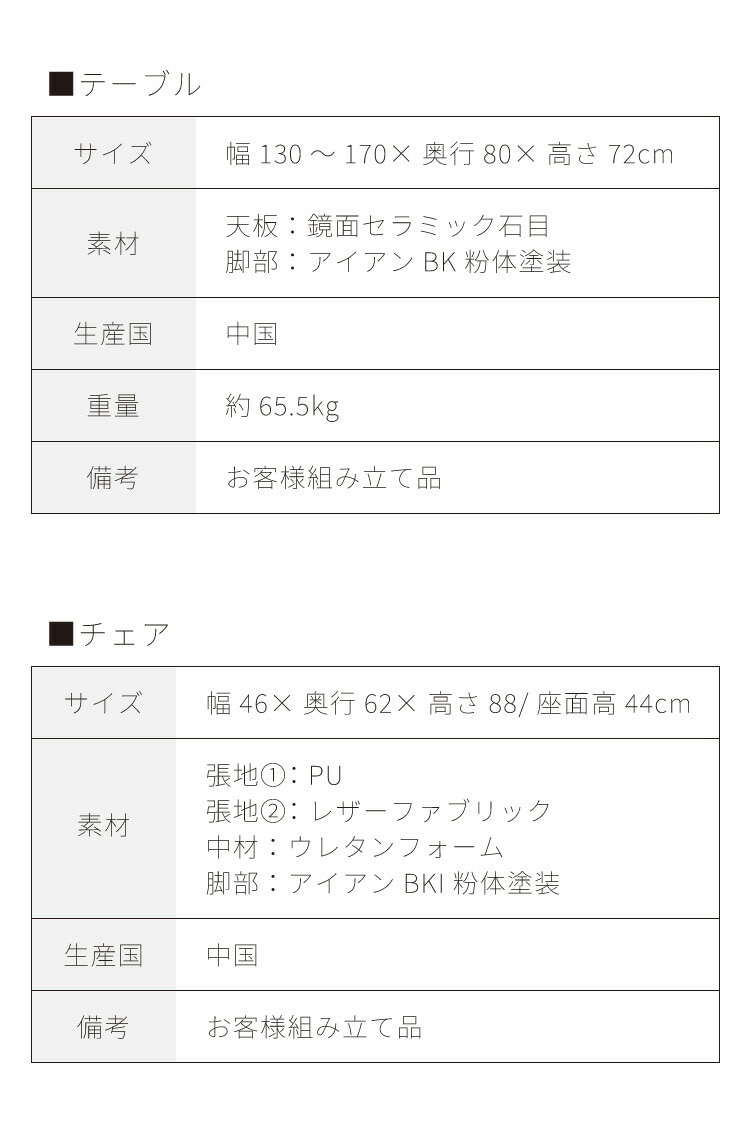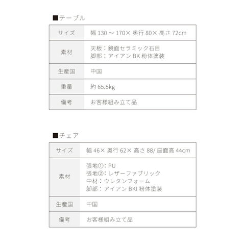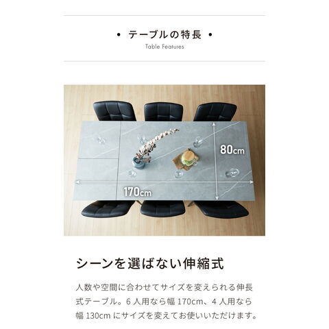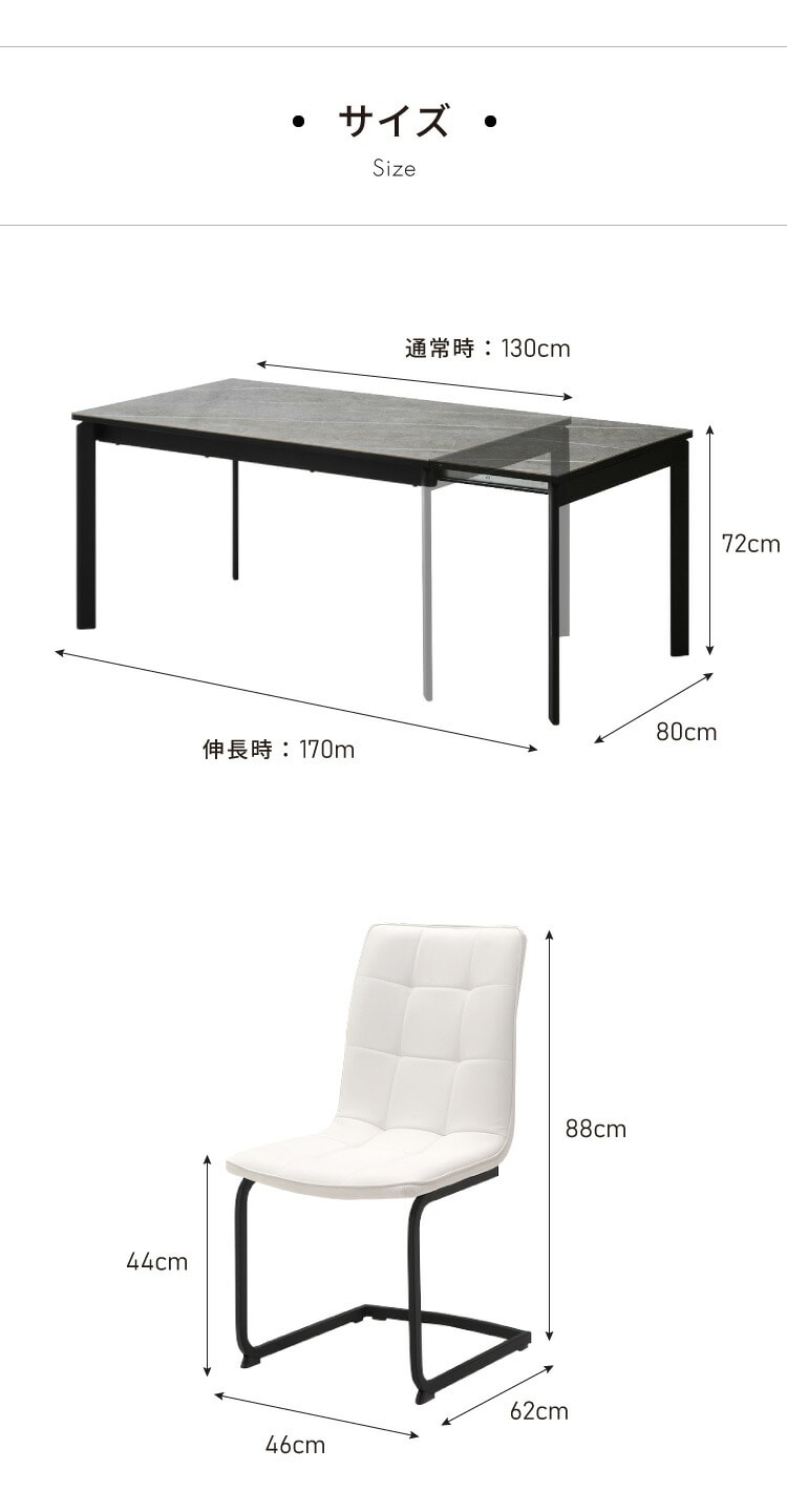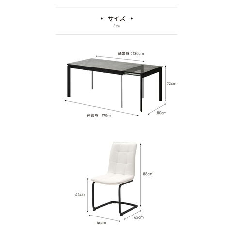 テーブル:幅130~170cm×奥行80cm×高さ72cm
