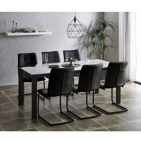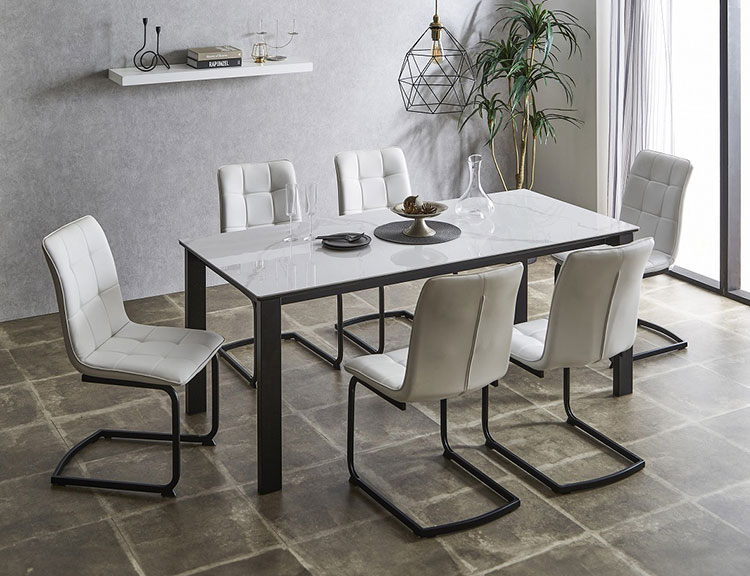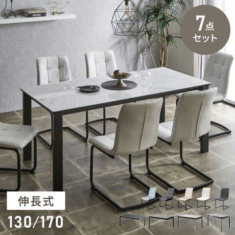 セラミック 伸縮 ダイニングセット 6人掛け 7点セット ダイニングテーブルセット 伸長式 幅130~幅170 合皮 デザインチェア 鏡面 ダイニングチェア 耐水 耐熱 大理石調【送料無料】