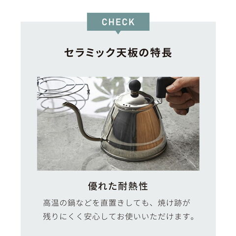 デザイン性・機能性に優れた石目のセラミック天板採用。