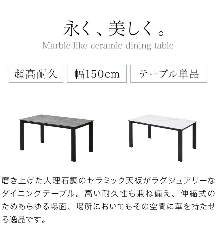 セラミック ダイニングテーブル 単品 幅150 4人掛け 大理石調 リビング テーブル ダイニング 耐水 耐熱 白 鏡面 傷がつきにくい おしゃれ 北欧 モダン【送料無料】