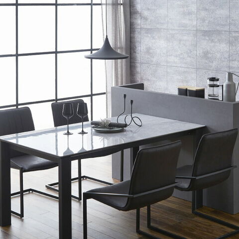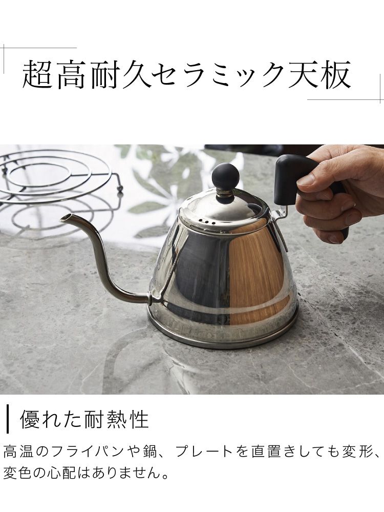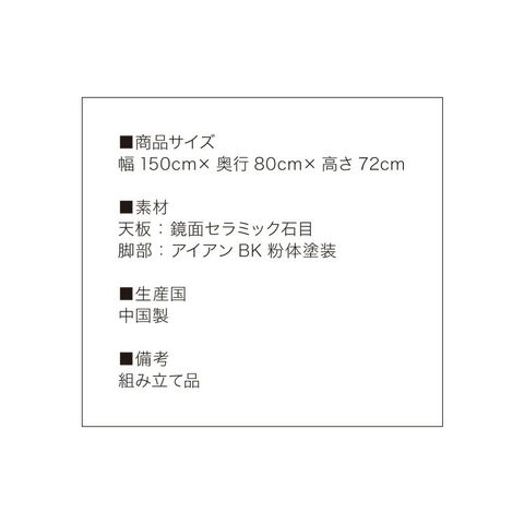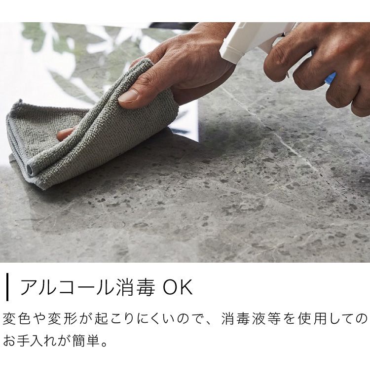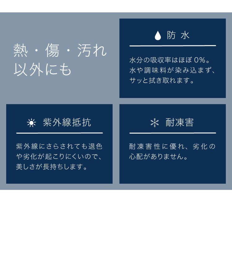鏡面セラミック天板使用。耐熱・防汚・キズに強くお手入れラクラク。135cmサイズで場所を選びません。