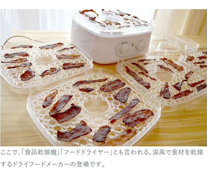 ★自分好みの自家製ビーフジャーキーが、簡単に作れるドライフードメーカーです。肉の味付けも大きさも自分次第。