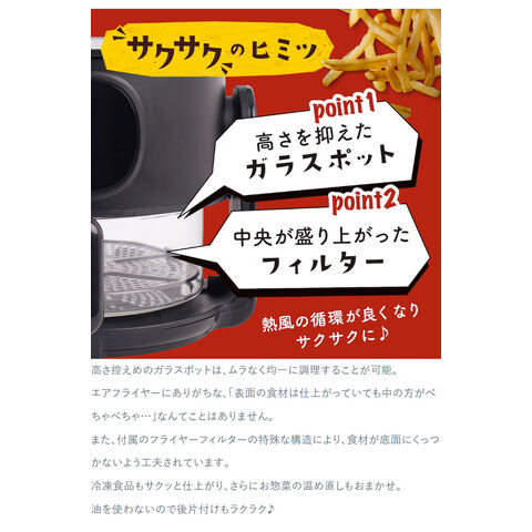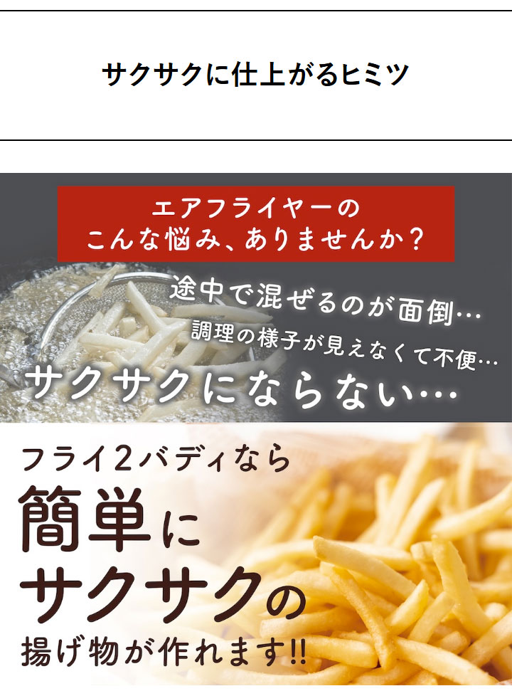 エアフライヤー フライ2バディ サンコー 電気式フライヤー 時短 ほったらかし調理 ヘルシーな揚げ物 フライドポテト 簡単調理 ARFR25HBK【送料無料】