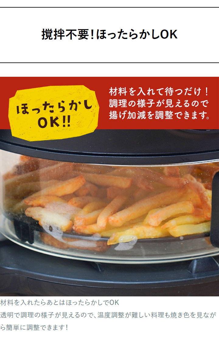 中の様子が見えるので、温度調整が難しい料理も焼き色を見ながら簡単調理!