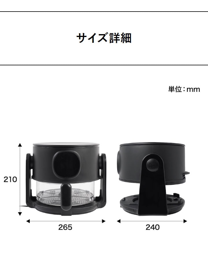 材質:本体:PPガラスポット/ガラス蓋:PPフライヤーフィルタ―/鍋:メタル