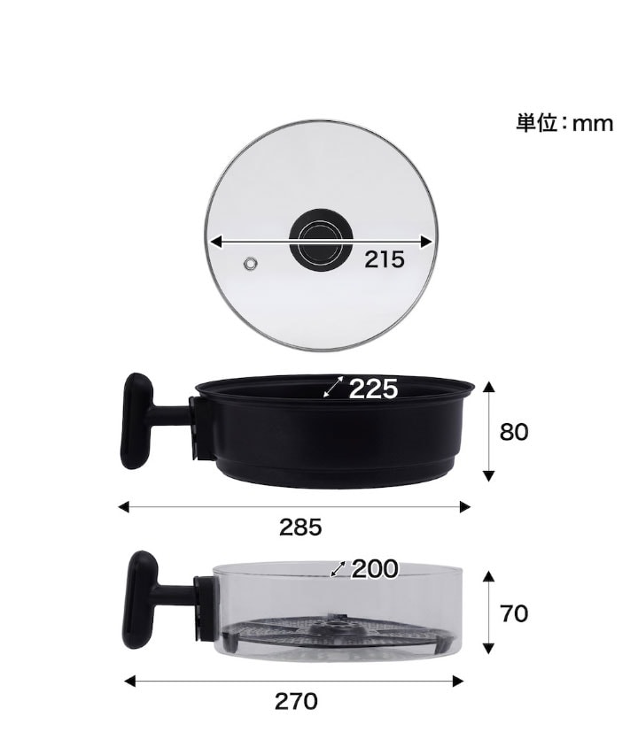 ガラス蓋サイズ:(持ち手含む):幅215×奥行215×高さ30(mm)