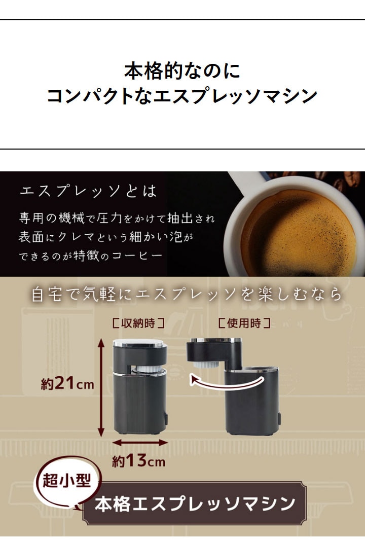 約9cmの幅で場所を選ばない、家庭用エスプレッソマシン
