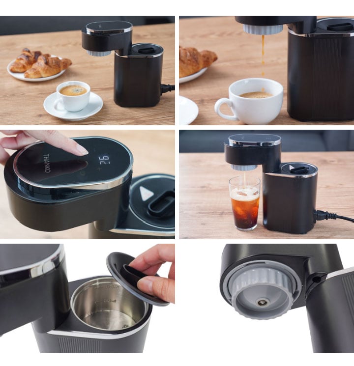 使い方は簡単。水とコーヒー粉をセットすれば、約2分で抽出します。温度も85~95度で設定可能。