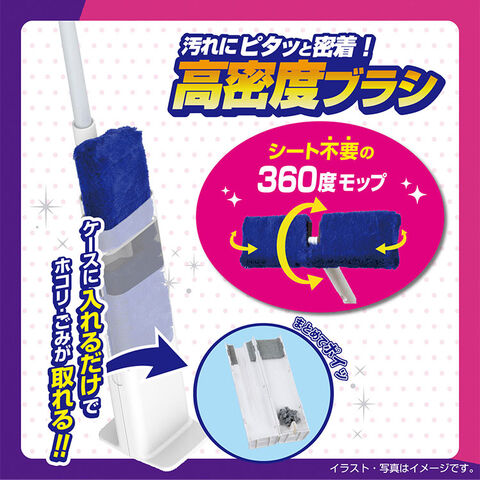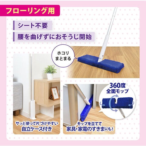 ■360度全面モップのため広い床面だけでなく、モップを立てて家具、家電などのスキマのお掃除にも便利です。