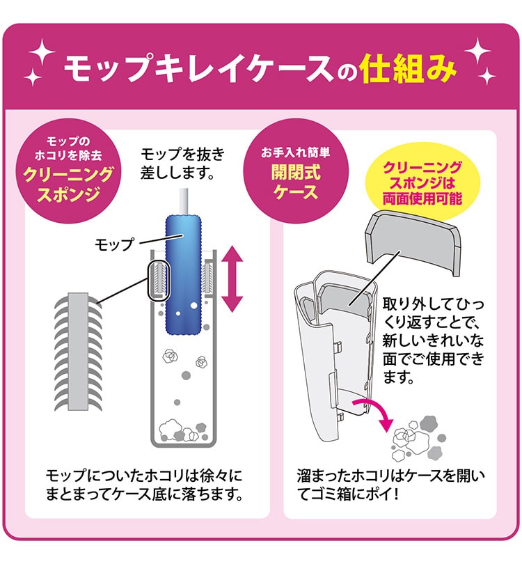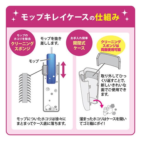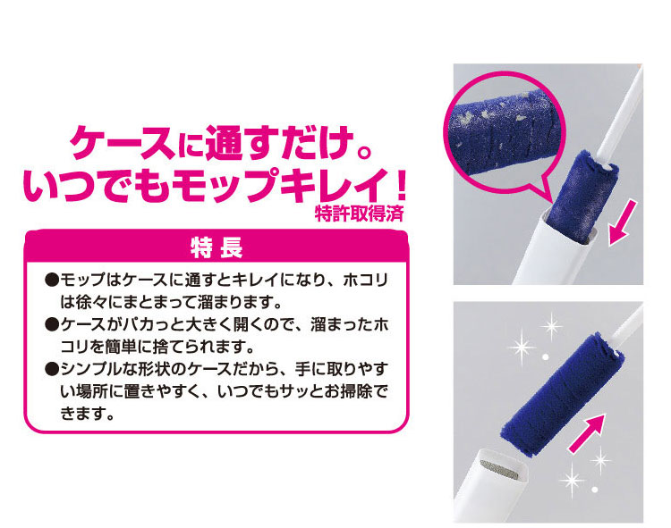 ■モップはケースに通すとキレイになり、ホコリは徐々に溜まってまとまります。