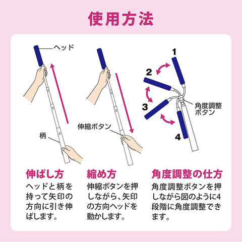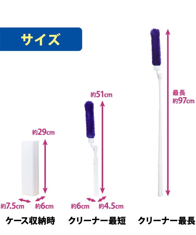■伸縮タイプなので手の届きにくい高い所や、家具、家電のスキマなどに便利です。