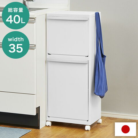 天馬 whiterush ホワイトラッシュ 多段分別ごみ箱 40L 幅35cm 奥行27cm 高さ85cm 日本製 多段 2段 分別 ゴミ箱 ごみ箱 ダストボックス キャスター付き 袋掛け付き フック付き 分別タグ付き WR-3521【送料無料】
