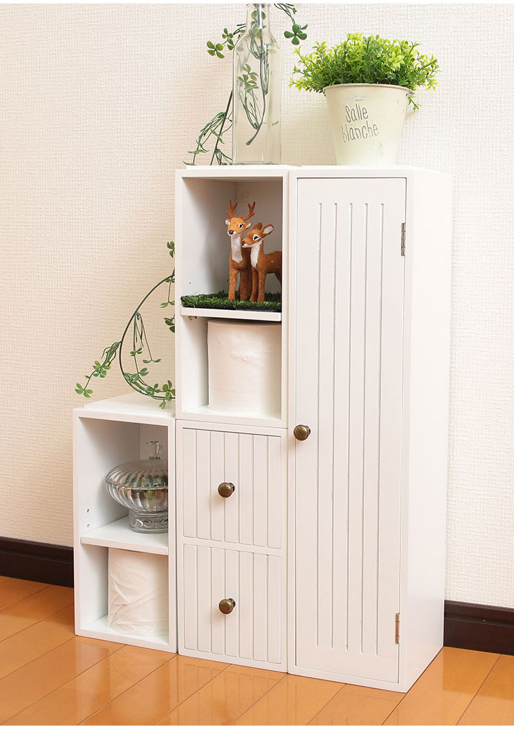 重ねて並べて自由に組み合わせできるトイレ収納シリーズ。