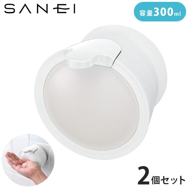 【2個セット】 mog ウォールソープディスペンサー 浮かせる収納 詰め替え ハンドソープ シャンプー 洗剤 ボトル 吸盤 壁面 簡単取付 大容量 詰め替えボトル SANEI PW1710-W4 白 ホワイト【送料無料】