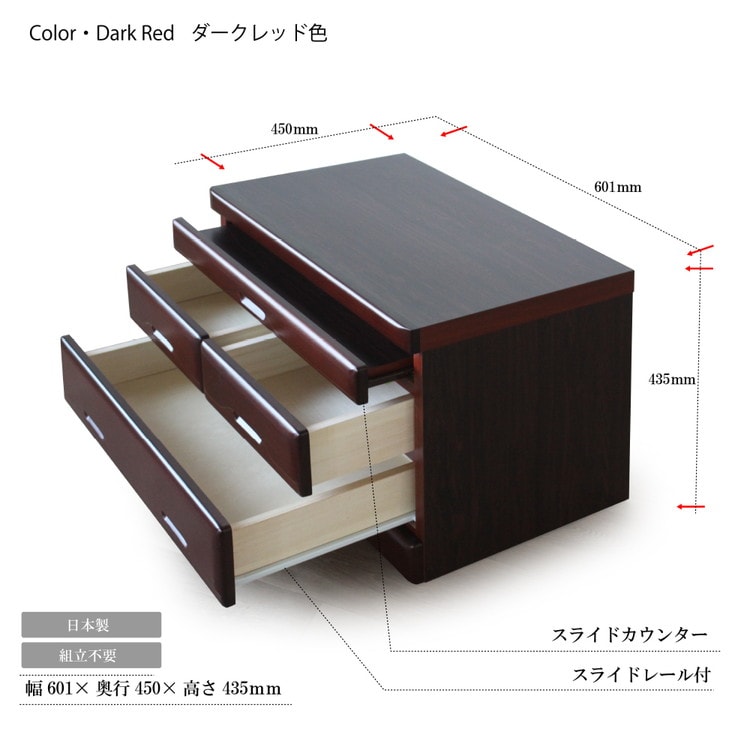 タンス 仏壇 幅60cm 3段 国産 完成品 チェスト 収納 ラック 木製 桐 60-3LC翔天【送料無料】