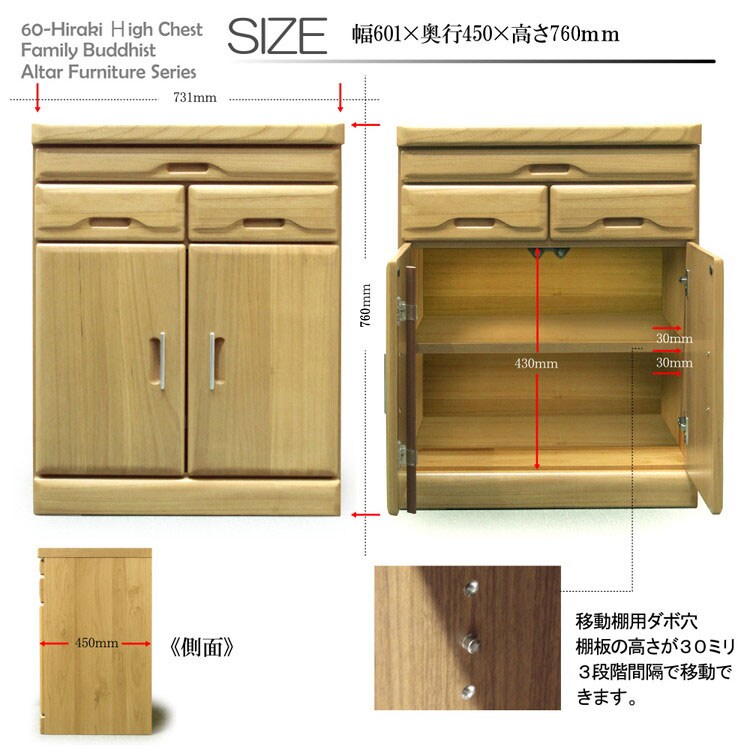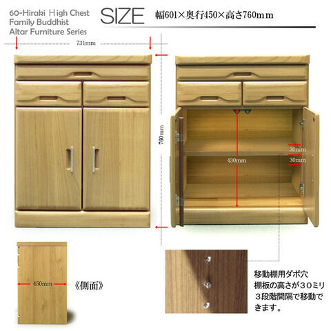 チェスト 仏壇 幅60cm 高さ76cm 観音開き 国産 完成品 仏壇タンス 仏壇チェスト 収納ボックス 収納ラック 木製 桐 60幅H扉 翔天【送料無料】