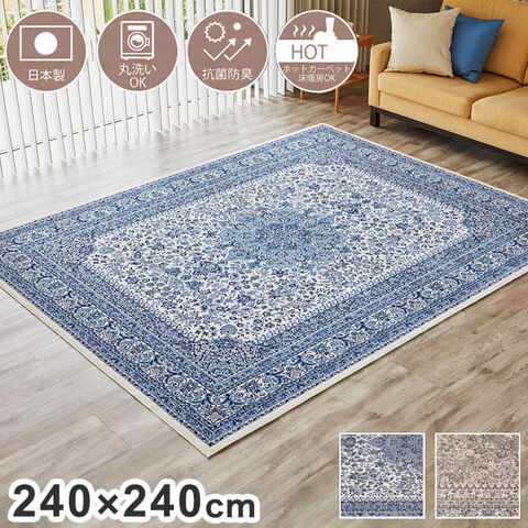 日本製 ラグ カーペット ペルシャ 柄 洗える おしゃれ 240×240 オールシーズン アンティーク ペルシャ絨毯風 じゅうたん モケット織 床暖房 抗菌防臭 薄手 バリアフリー かわいい【ポイント10倍】 【送料無料】