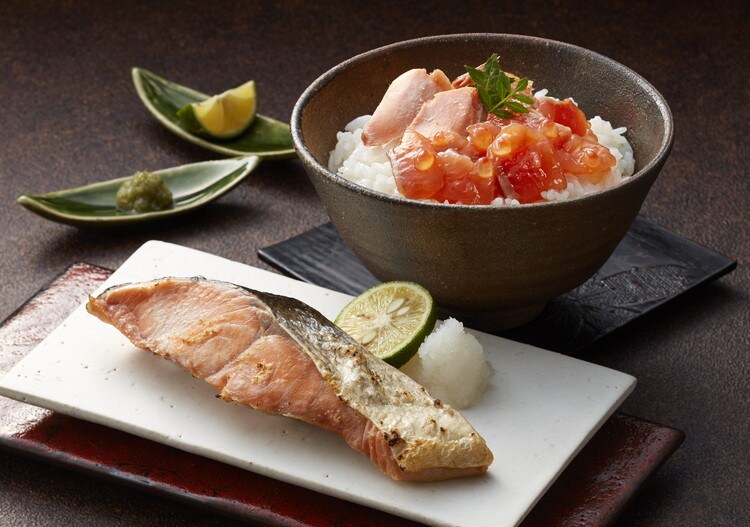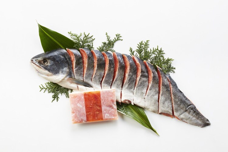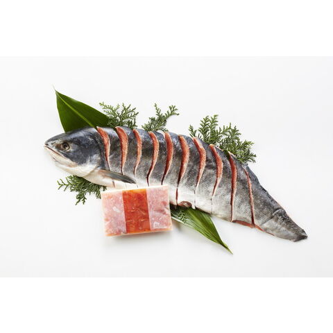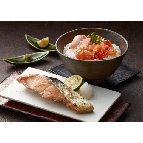 原材料(アレルギー表記含む):鮭の塩切身:秋鮭(北海道産)、食塩・秋鮭(北海道産)、秋鮭の卵(いくら)(北海道産)、醤油(小麦・大豆を含む)、還元水飴、米発酵調味料、食塩、鮭の魚醤/酸味料、トレハロース、酸化防止剤(ビタミンC)、調味料(アミノ酸等)、パプリカ色素、酵素