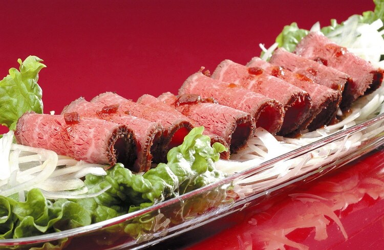 味彩牛のモモ肉を使い、美味しさを逃さず真空調理することで、素材の肉の旨みと甘みを凝縮したローストビーフです。地元神戸の素材にこだわった神戸マスタードでご賞味ください。