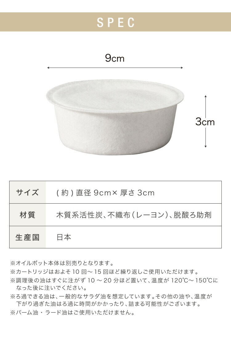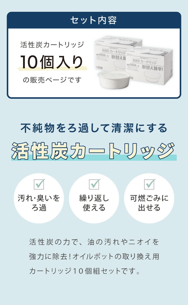 活性炭カートリッジ 10個組 オイルポット用 「脱酸ろ助剤」入り 交換用カートリッジ 10個セット 油こし交換フィルター 日本製【送料無料】