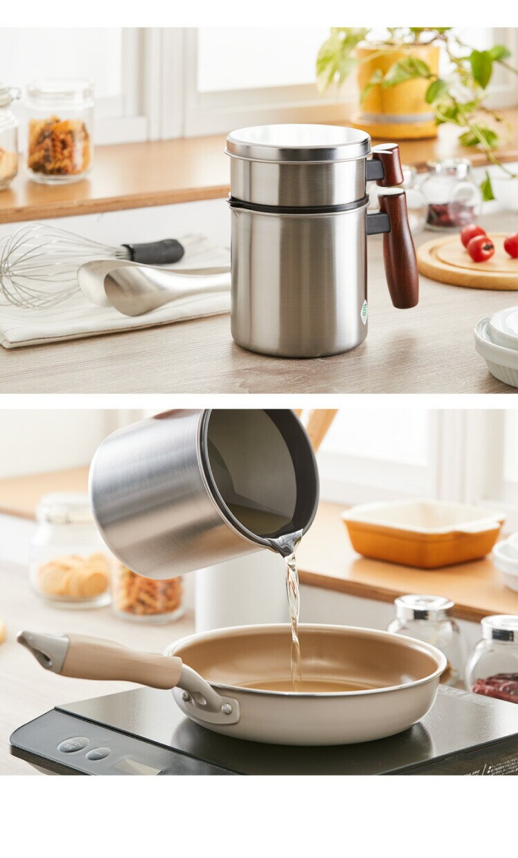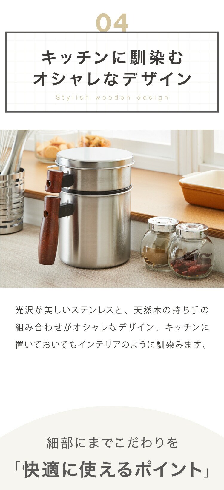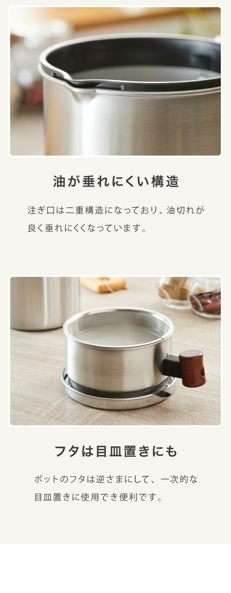 ■ステンレス×木製ハンドルのスタイリッシュなデザインのオイルポット。