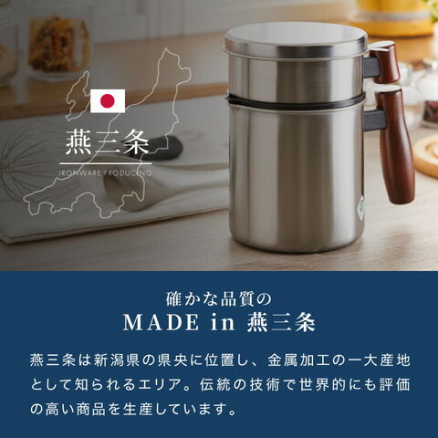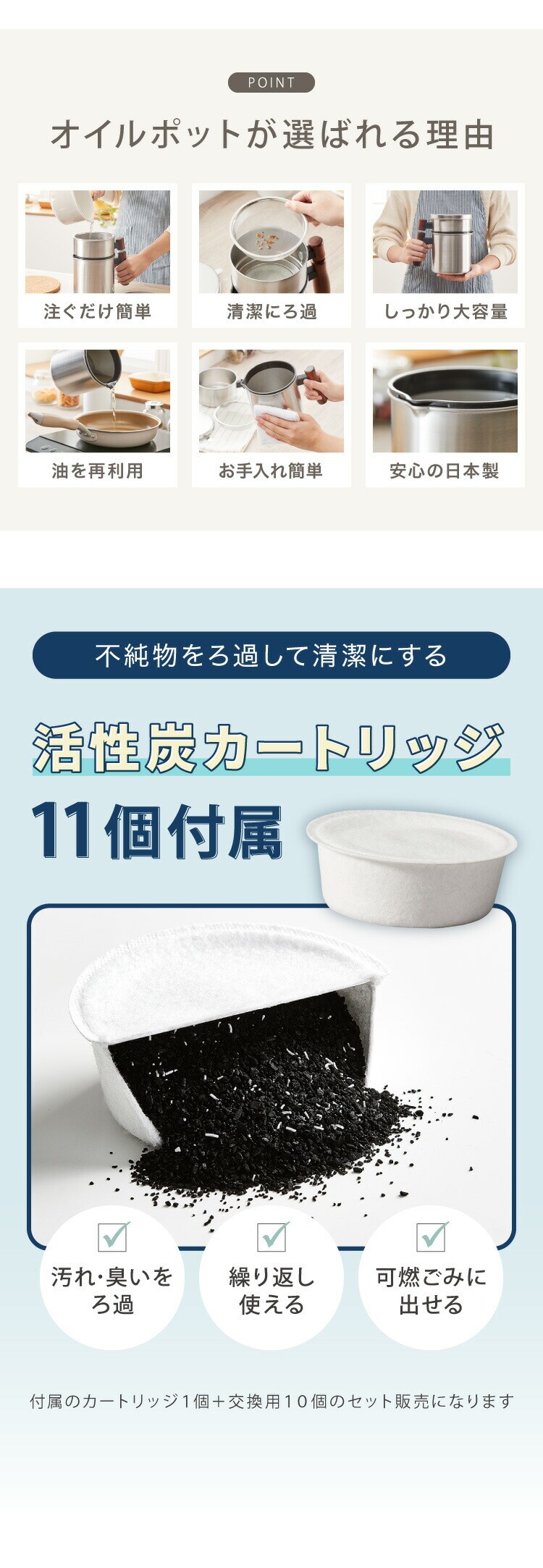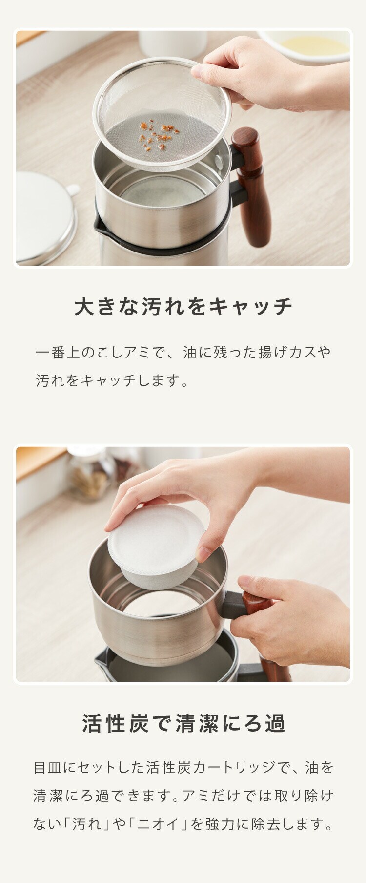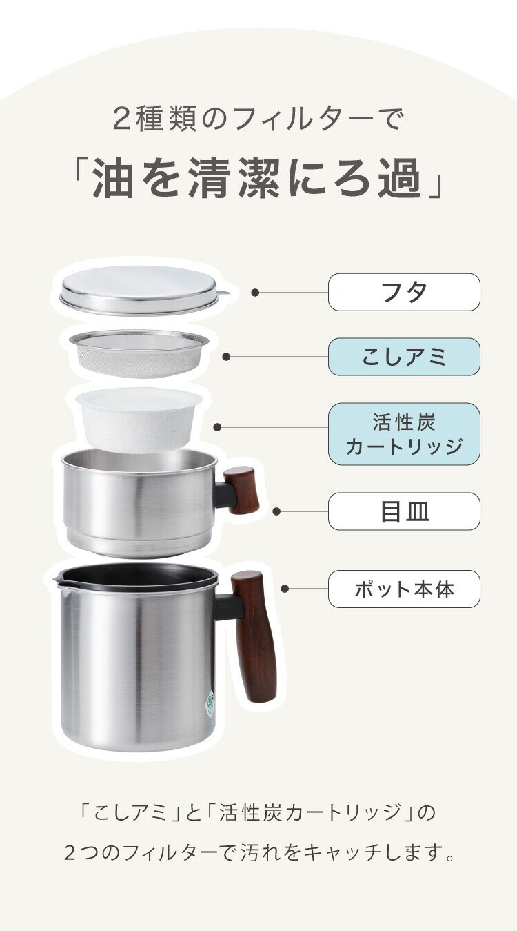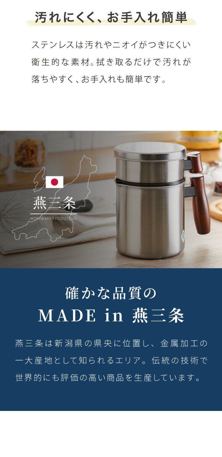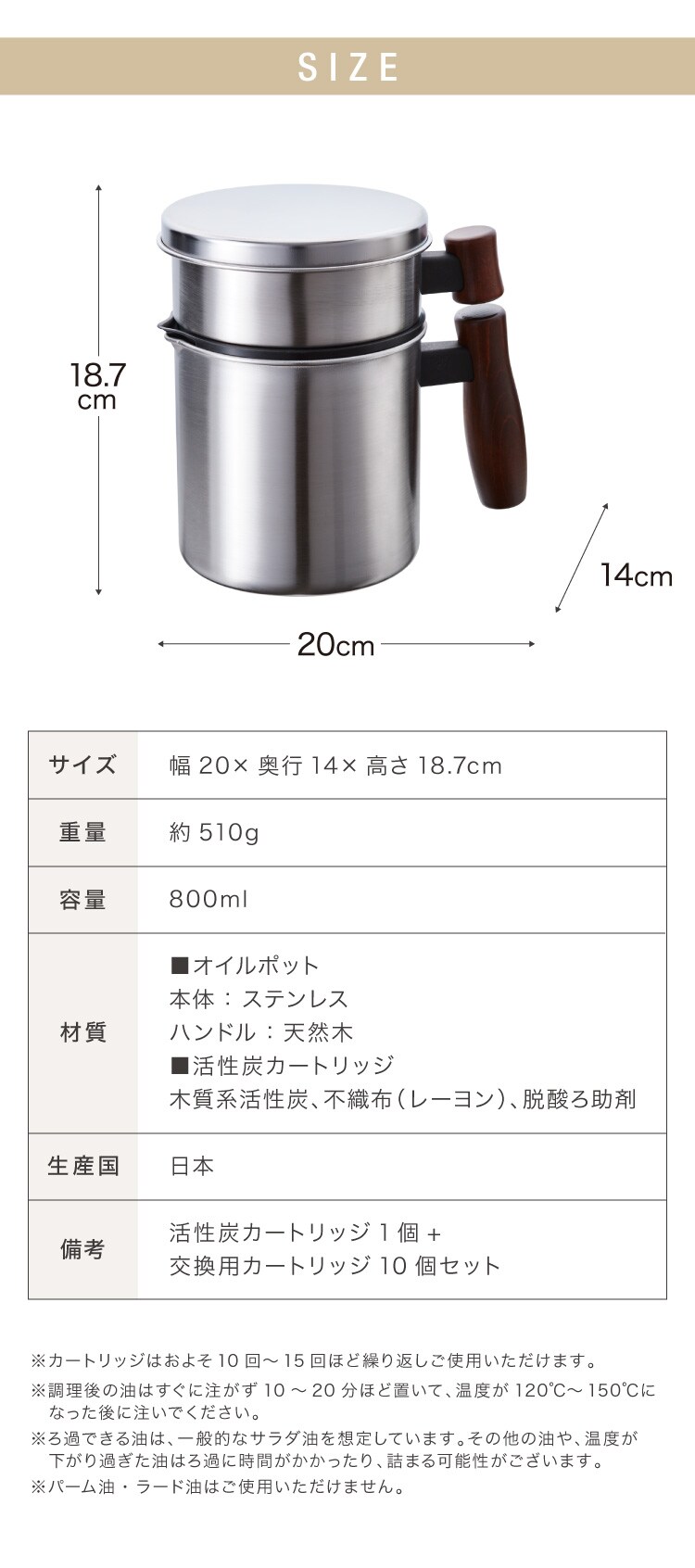【交換用カートリッジ10個付き】日本製 燕三条 ステンレスオイルポット 800ml 木製ハンドル 活性炭カートリッジ 油こし器 油入れ オイルポット ステンレス 注ぎ口付き おしゃれ【送料無料】