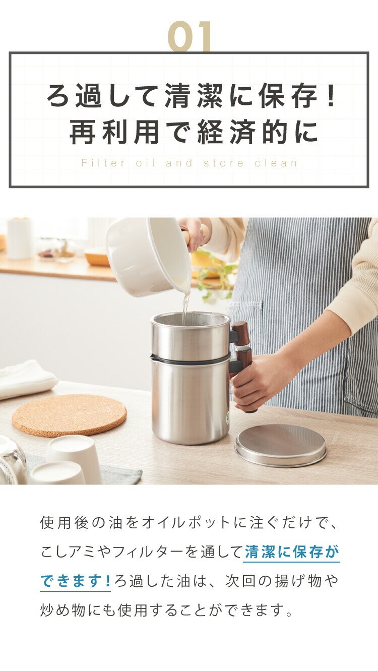 ※ろ過できる油は、一般的なサラダ油を想定しています。その他の油や、温度が下がり過ぎた油はろ過に時間がかかったり、詰まる可能性がございます。