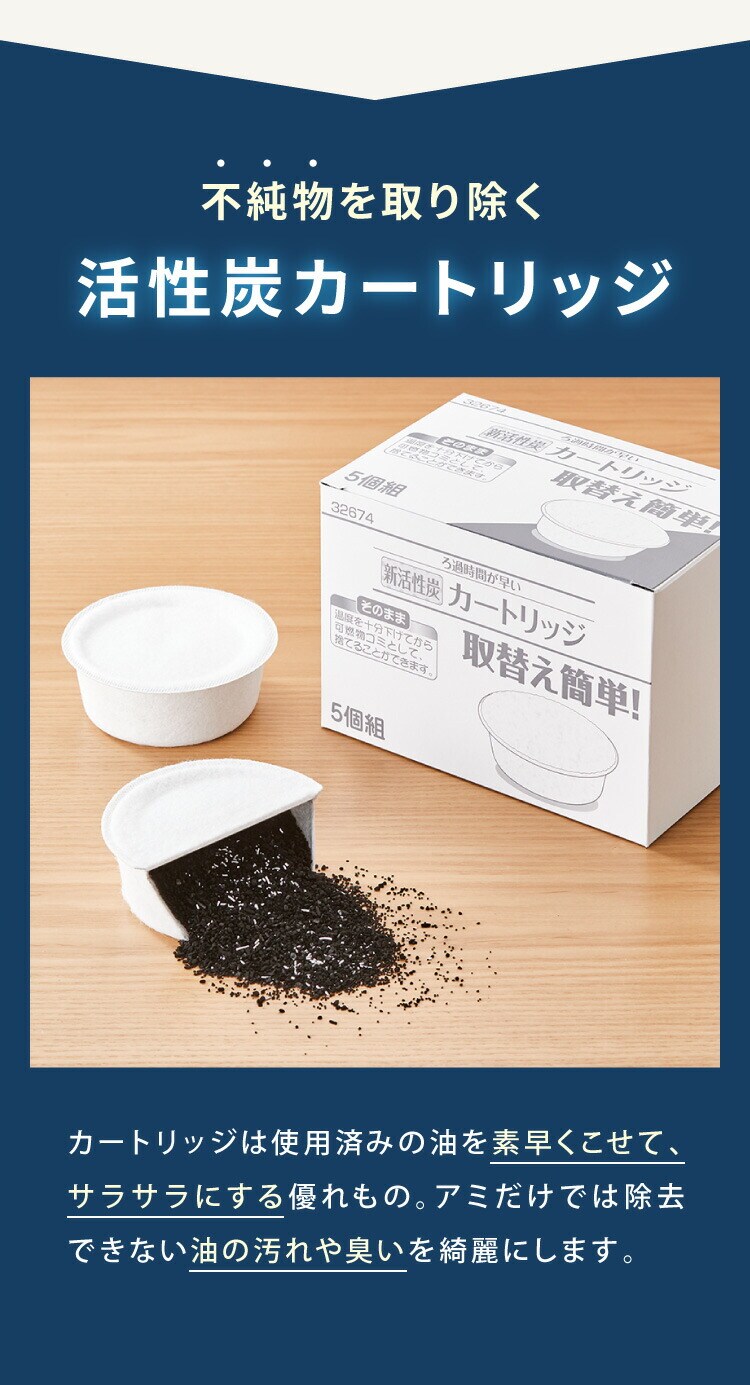 カートリッジは使用済みの油を素早くこせて、サラサラにする優れもの。
