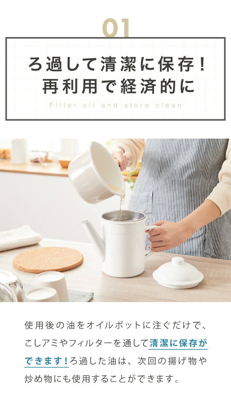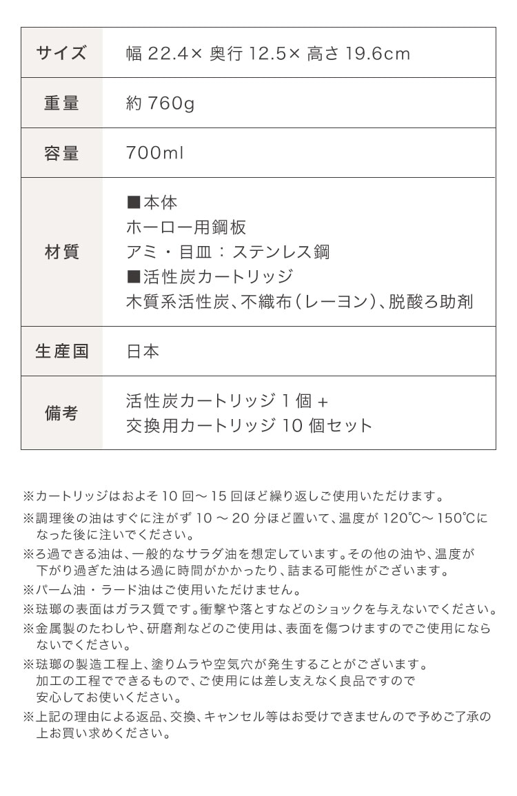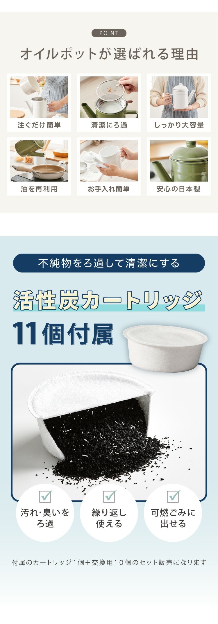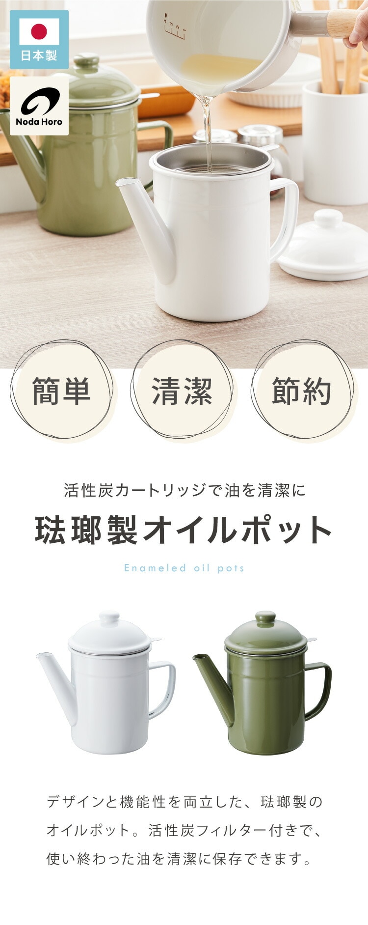 【交換用カートリッジ10個付き】野田琺瑯のオイルポット 日本製 活性炭カートリッジ 700ml オイルポット ホーロー 白 ホワイト 注ぎ口付き 油こし器 油入れ 油ポット おしゃれ 野田琺瑯【送料無料】