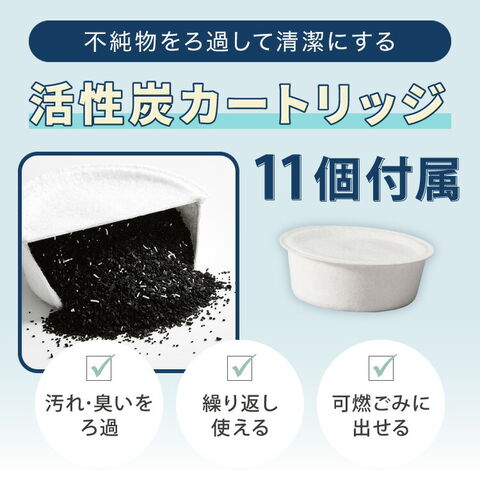 ■本体付属の活性炭カートリッジ1個に加え、交換用カートリッジ10個がセットになっています。
