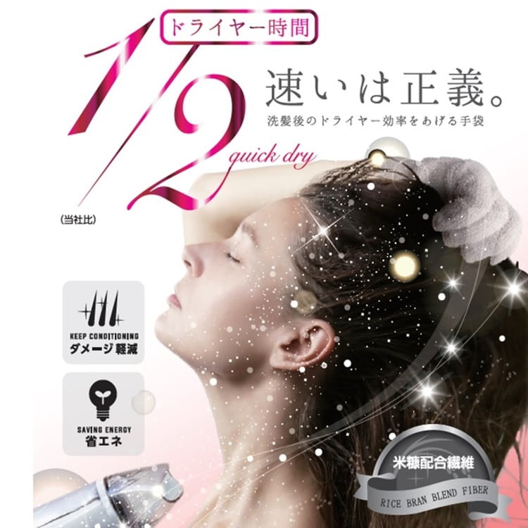 ◆グローブを付けてドライヤーすることでドライヤー時間が半分に!