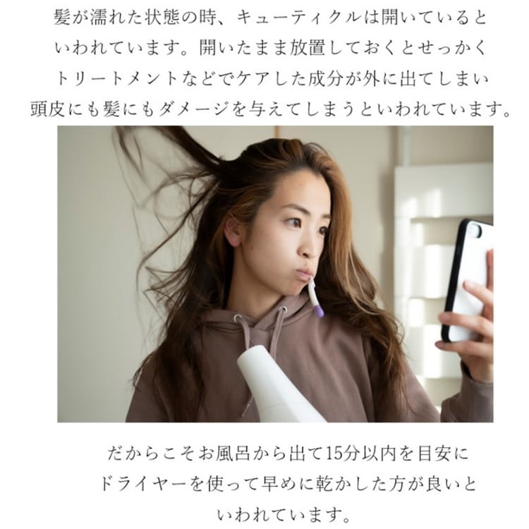 ドライヤーの熱ダメージ軽減にも!時短もケアも同時に行えます!