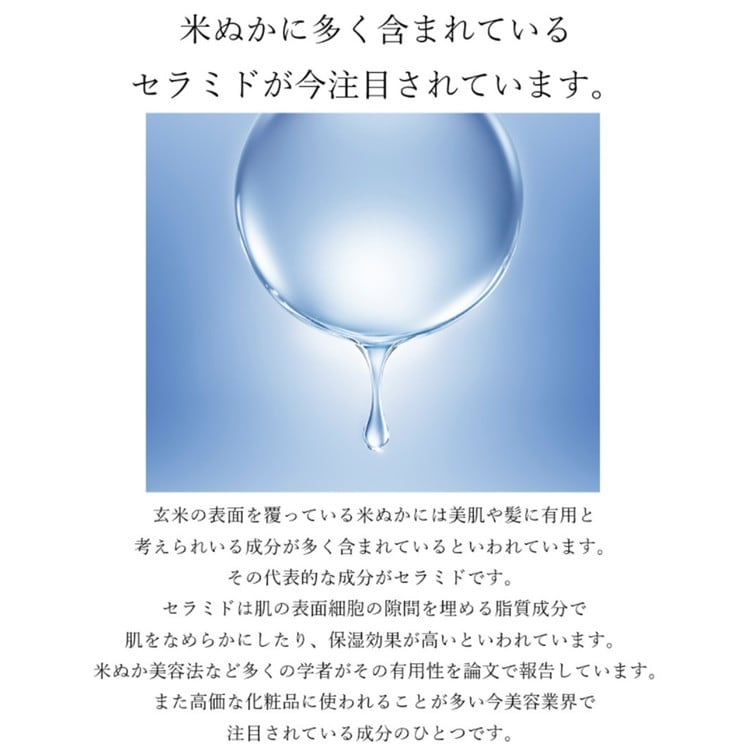 米ぬかには保湿効果の高い「セラミド」が含まれ美容業界でも注目の成分です。
