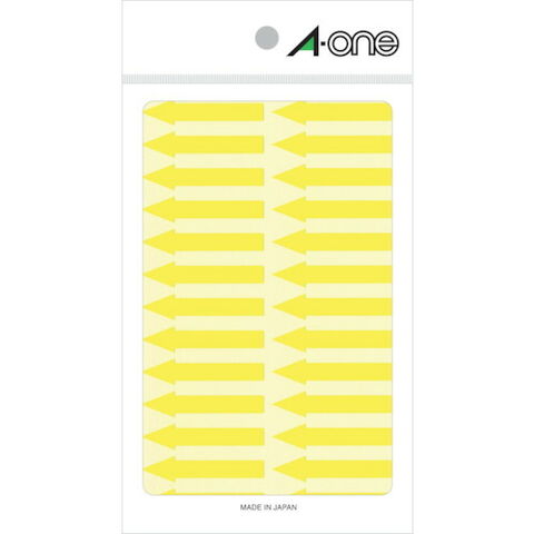 ●色:蛍光黄●1パック内:104片●ラベルサイズ直径(mm):42●内容:矢印●パック入数(枚):4●特殊ラベル●光沢コート紙