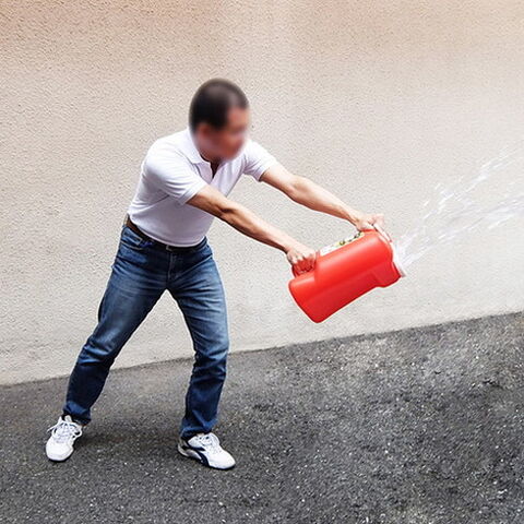 ・一体成型で耐久性に優れています。・火元に向けて複数回投水できるセブンホール構造となっております。・大きくスイングできる大型グリップなので、遠くまで投水可能です。