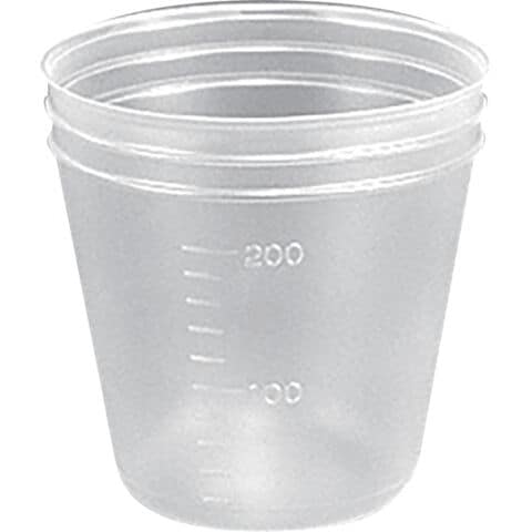 ●容量(ml):200●目盛間隔(ml):20●上径×下径×高さ(mm):83×58×85●バキュームタイプ●オートクレーブ不可●ポリプロピレン●バキューム成形品ですので、底の凸凹がなくフラットです。